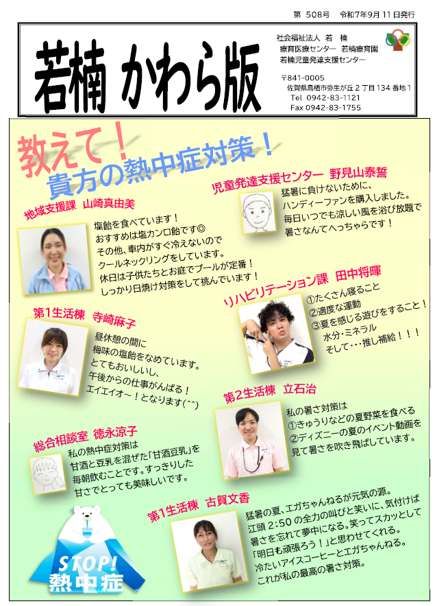 最新情報 社会福祉法人 若楠の施設紹介 若楠療育園 ここは、みんなの家、みんなが家族。 若楠児童発達支援センター みらいにつなぐできること。 どんぐりセンター若楠 「育てあう」「認め合う」子育てをご家族と一緒に。 若木園 緑あふれる環境でその方らしい暮らしを。 青葉園 その方の個性を大切に 青葉ホーム 地域に根ざした生活を送れるように! どんぐり村 笑顔いっぱいで働ける、楽しめるところ。 グリーンファーム山浦 きっと見つかる自分の居場所。ほっとする場所 もしもしネット 障害を持った方の就業面と生活をサポート