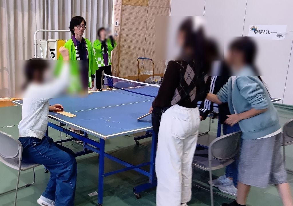 卓球台をコートにしてバレーボールのルールでプレイする