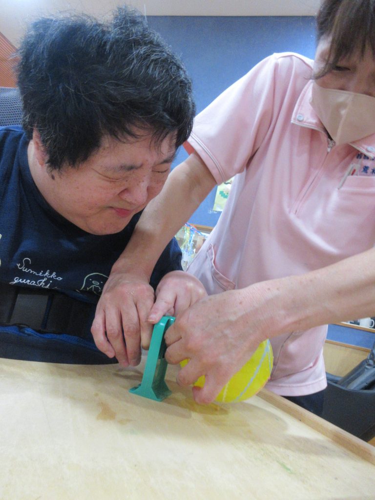 今年もヨーヨー釣りの出店を担当!学生さんや利用者の皆さんと一緒に、販売するヨーヨー作りにも力を合わせて取り組みました。