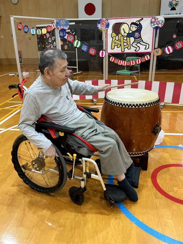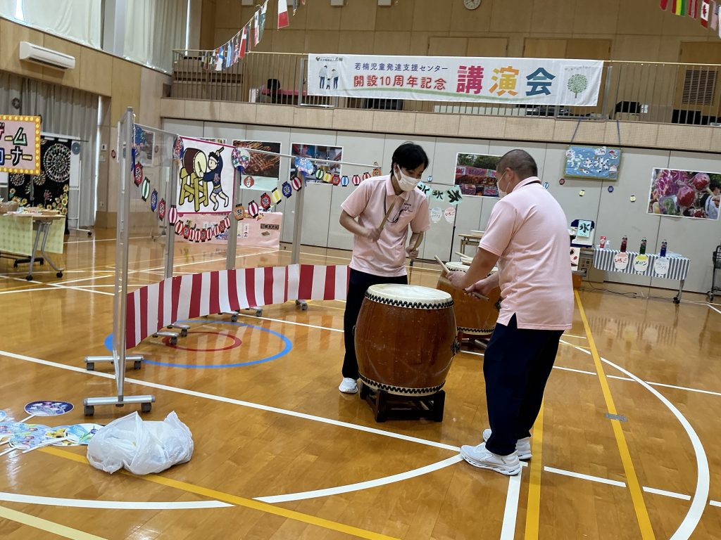 若木園から太鼓をお借りし、皆さんに太鼓を叩いて楽しんでいただけるようにしました。