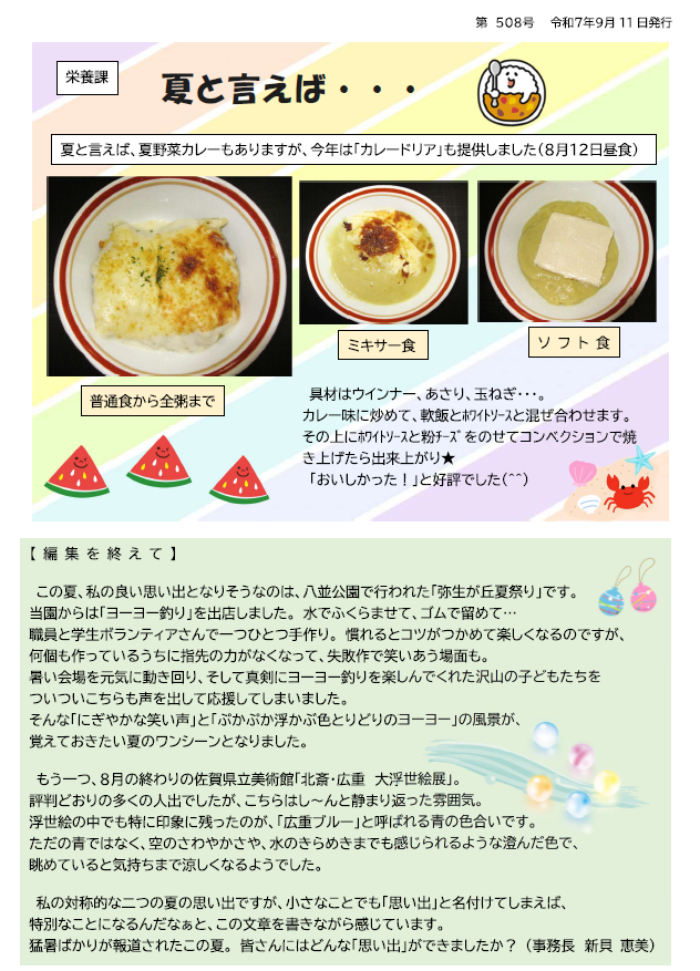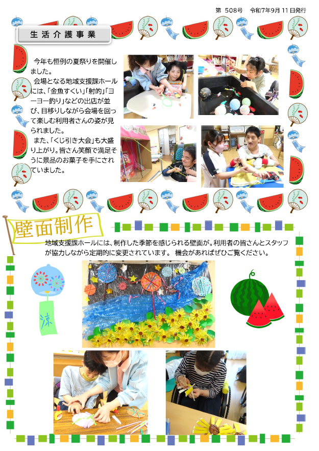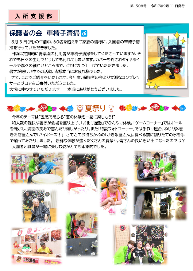 当日の園内夏祭りの様子は、次号のかわら版でお届けしますので、ぜひご覧ください!