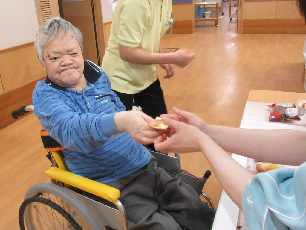 生活棟内に特設のスイーツショップを開き、スタッフが店員となってお迎えしました。