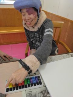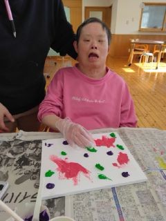出来上がった作品を見て、職員も利用者さん同士も「素敵だね!」と声を掛け合っていました。