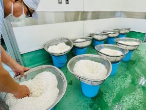 朝一、2日間寝かせておいた米も丁度良い具合に発酵しています。